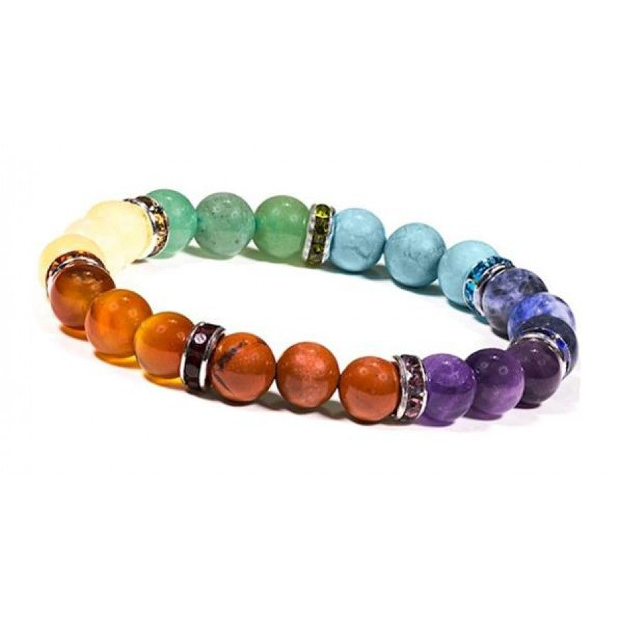 A colourful Crystal Chakra Bracelet, each colour represents one of our 7 Chakras. This bracelet can help you to realign your Chakras to help you feel your best.